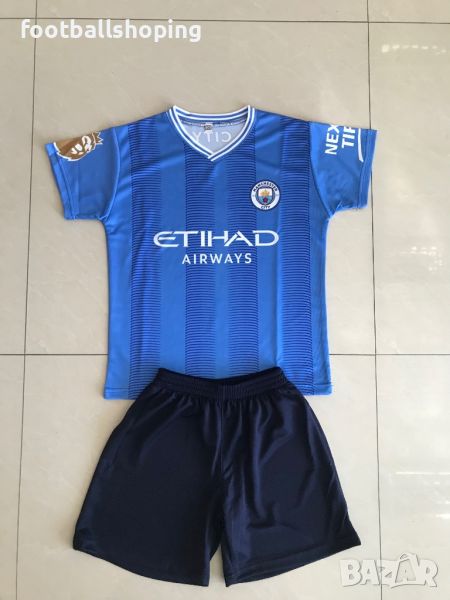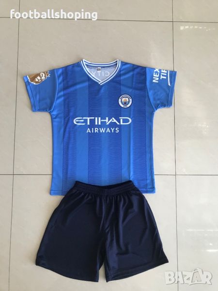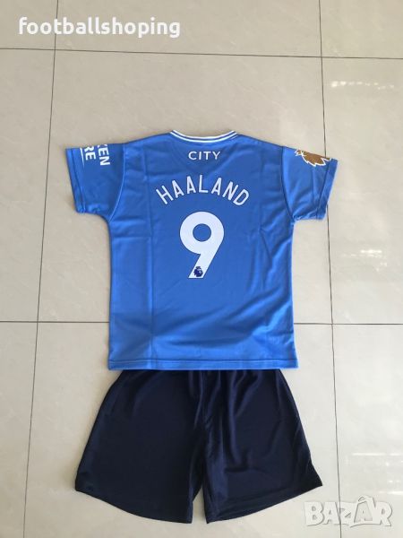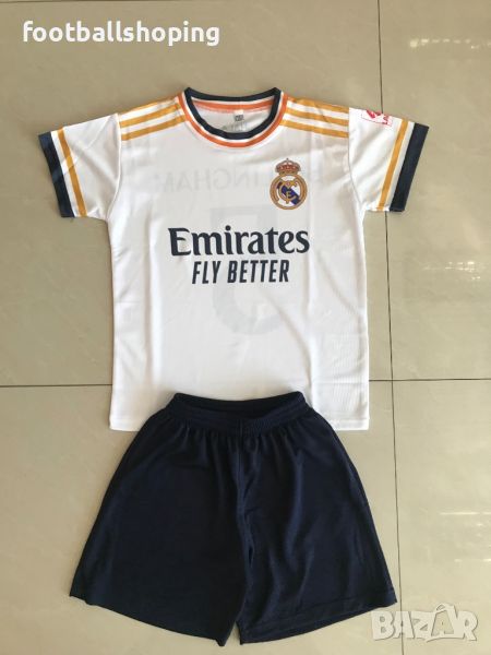 Предлагаме детски футболни екипи - 100% българско производство на Реал М с Белингам 5 и на Ман Сити с Холанд 9.Налични размери от 116см до 164см.Изпращаме до офис на Еконт.Материя : Полиестер лукс.Моля разгледайте и другите обяви в профила ни.Най различни футболни аксесоари и екипи.Може да ни потърсите и на Viber