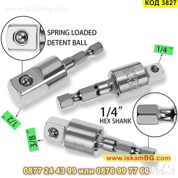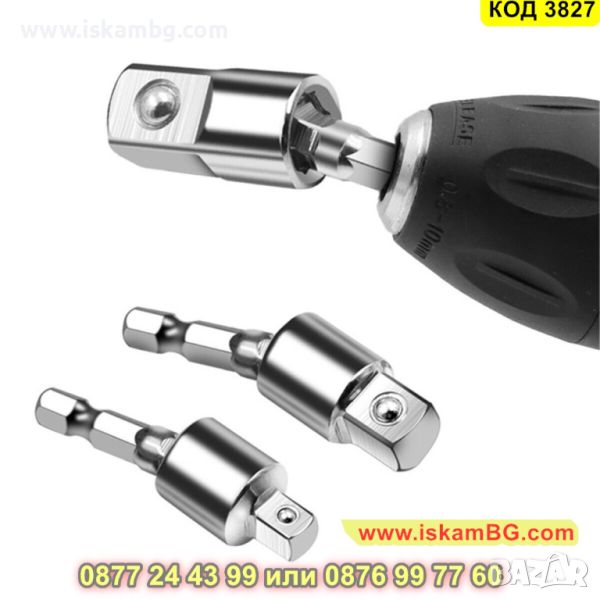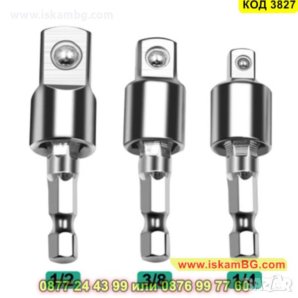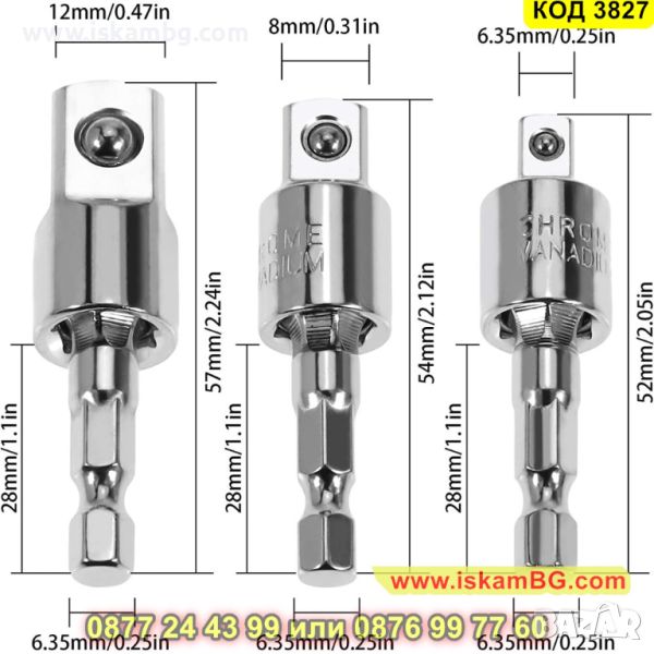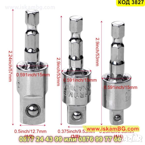 Комплект 3 броя адаптори, вложки за винтоверт с размери 1/2, 1/4, 3/8 - КОД 3827