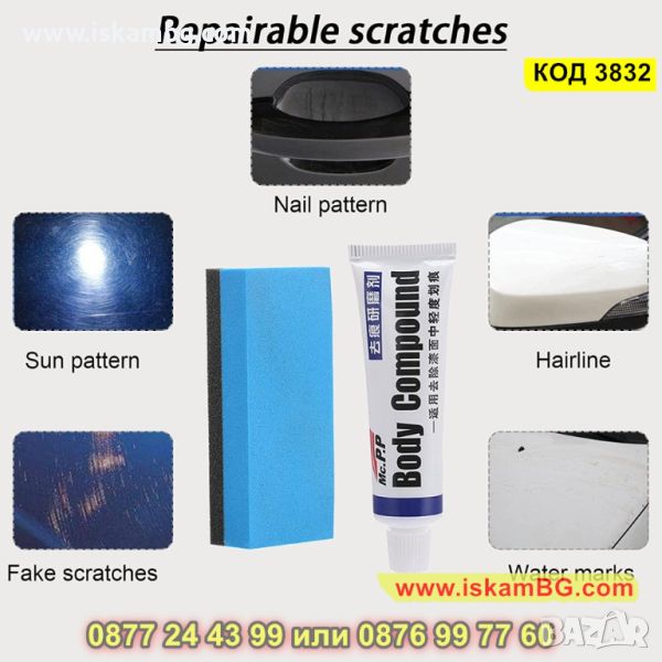 Паста за премахване на драскотини по кола с гъбичка - КОД 3832