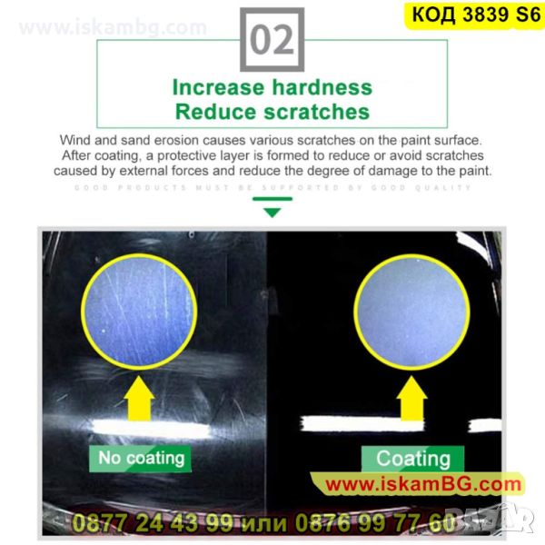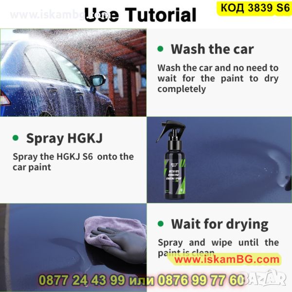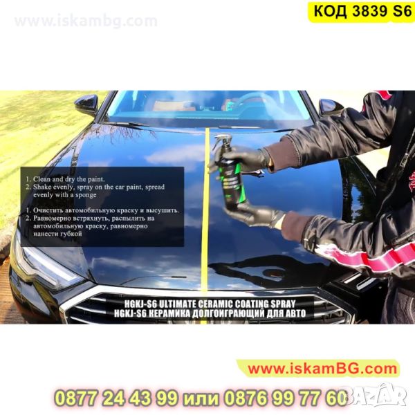 Нано керамичното покритие за кола - Ultimate Ceramic Coating Spray HGKJ AUTO S6 ще направи автомобила Ви бляскав и запазен! Този универсален спрей ! HGKJ S6HGKJ S6 се нанася лесно и гарантира трайна защита на боята от всякакви атмосферни условия – дъжд, сняг, слънце. Активната съставка, която спреят притежава в състава си - SiO2, в течна форма, HGKJ S6 запечатва повърхността на боята на автомобила, придавайки му керамичен огледален блясък! Спреят е с нано керамично покритие най – бързо и лесно ще върне блясъка на автомобила Ви, защитавайки го от надрасквания с камъни или други твърди предмети.