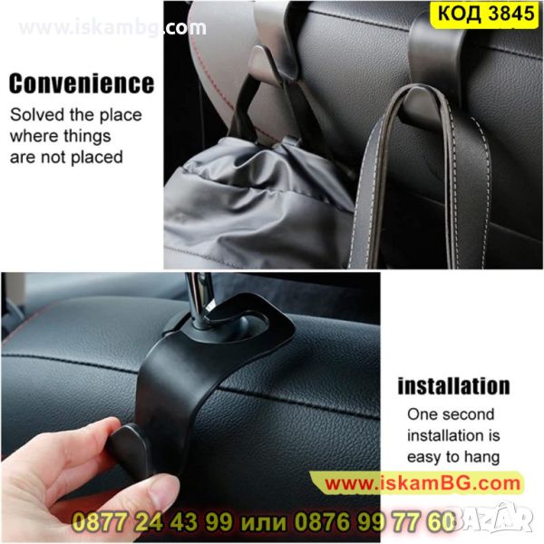 Закачалка за чанти и др, за задната седалка за кола в черно - КОД 3845