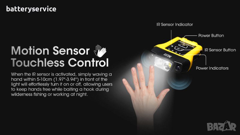Челник Nitecore NU11 е оборудван с бял и червен светодиод, както и с IR сензор за безконтактно управление на светлината