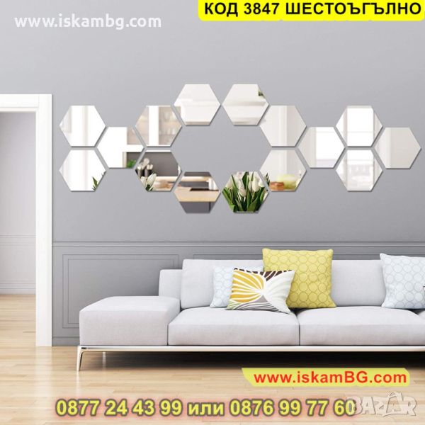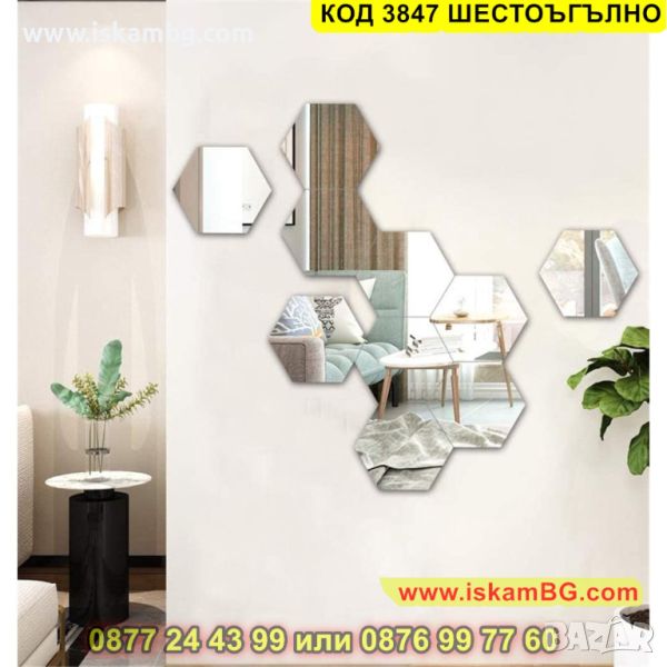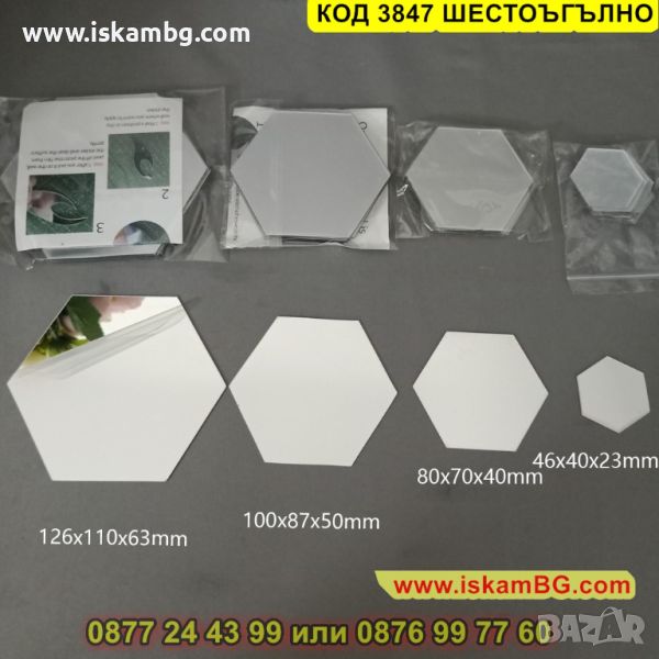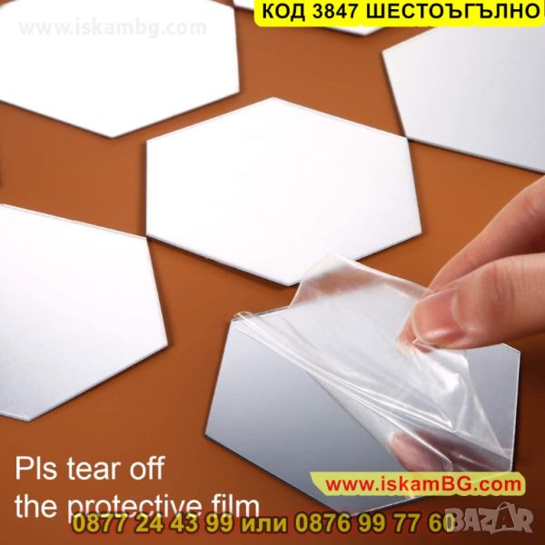 огледало от акрилна пластмаса - самозалепващо се - КОД 3847 ШЕСТОЪГЪЛНО
