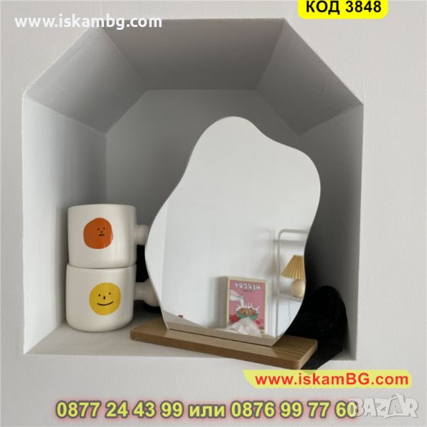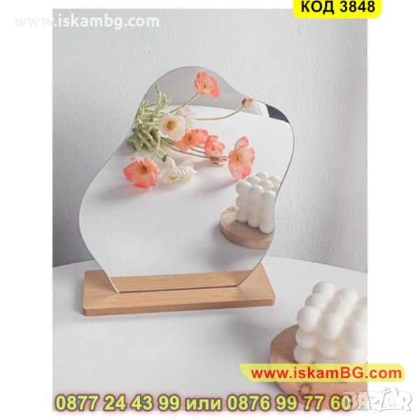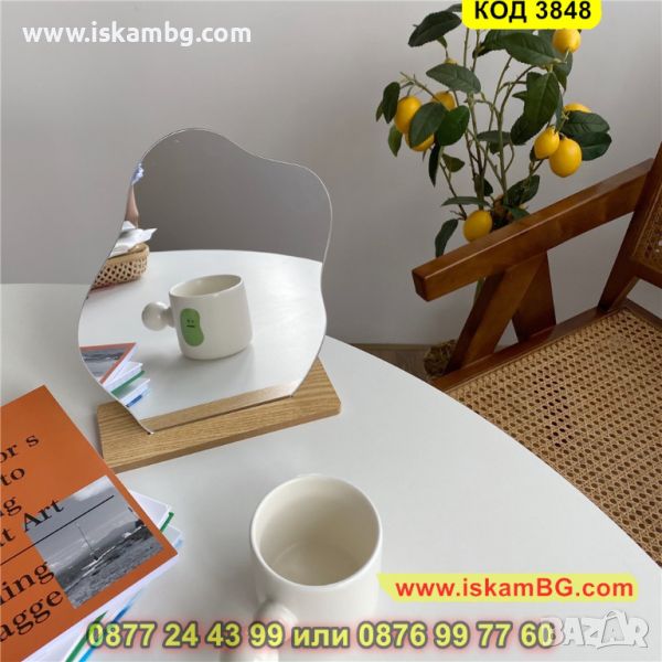 Настолно акрилно огледало с дървена стойка и форма на облак - КОД 3848