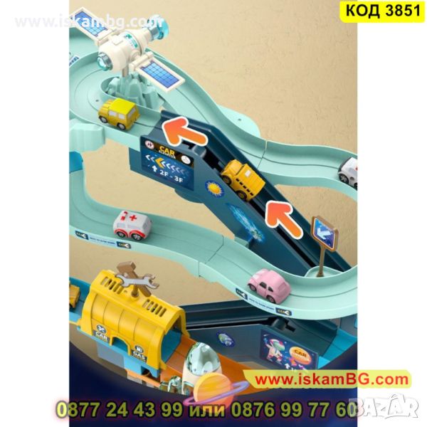 Пред детето ще се покаже цял игрален комплекс с писта на няколко нива, заобиколена от марсианския пейзаж. Кацналата летяща чиния мига в различни светлини и издава различни звуци, транспортна ракета се готви да излети, космическа станция се зарежда със слънчева енергия. Многоцветните коли се движат по пистата с автоматично движение, а детето преценява дали колата ще отиде в нов кръг или ще я изпрати до изхода, блокирайки пистата.