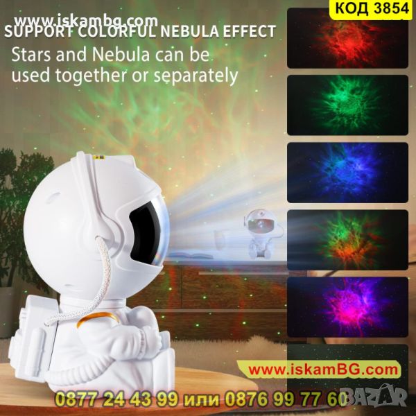Поставете този удивителен астронавт на масата и оставете неговия проектор да освети цяло звездно небе с галактики и мъглявини. Магнитната глава на астронавта може да се върти на 360 градуса.