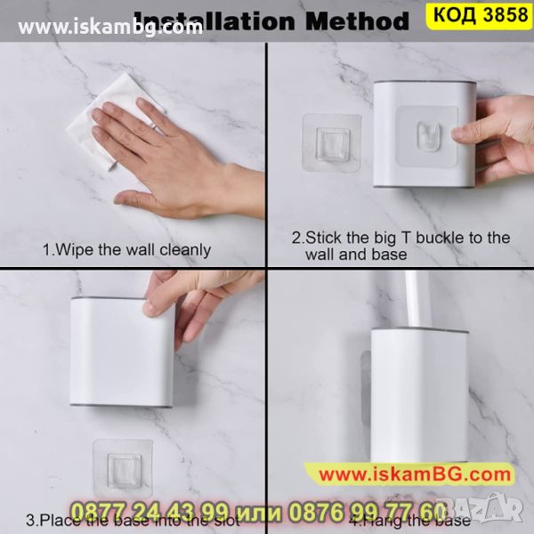 Тип: на стена (включен неинвазивен стикер) / свободностоящ