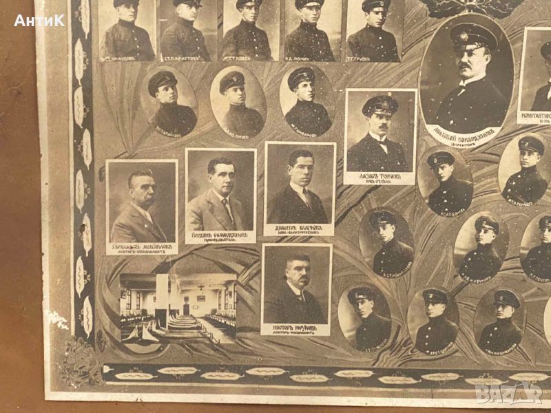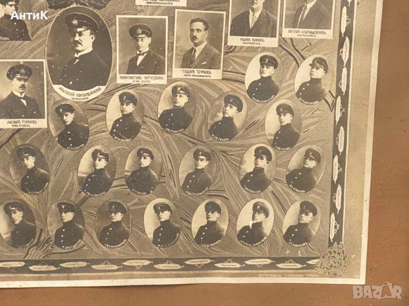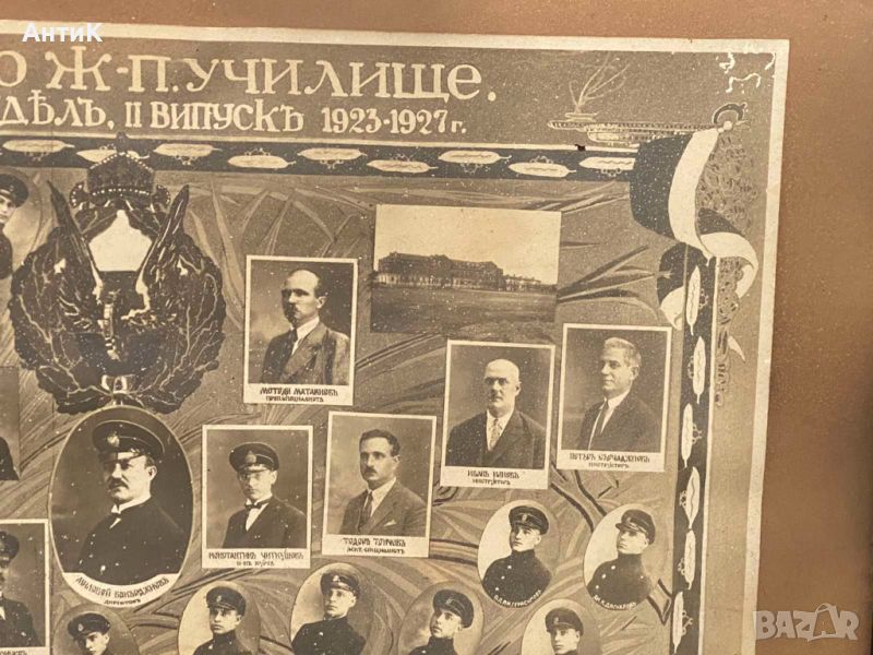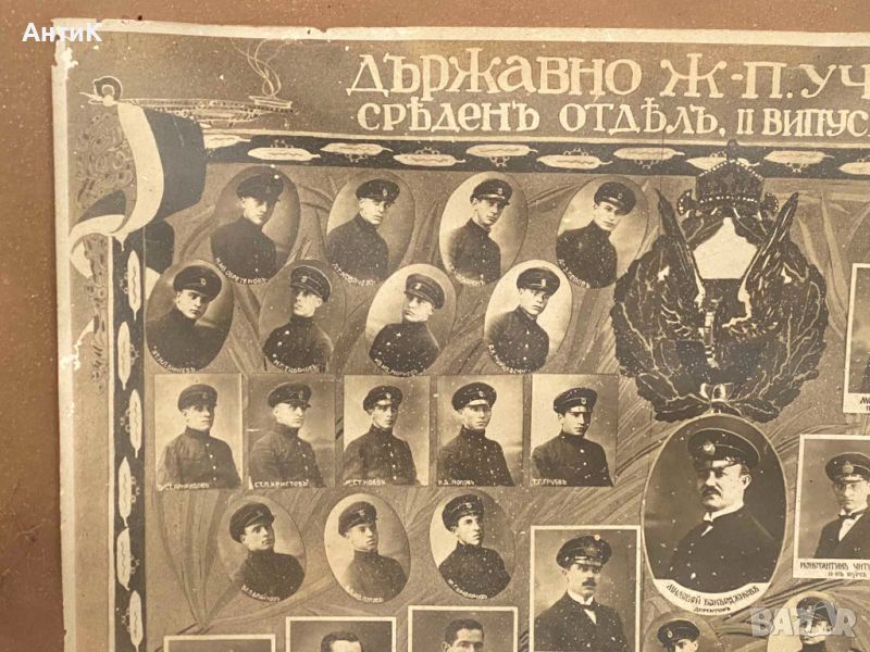 100 годишна стара фотография на випуск 1923-1927 год. на Държавното ЖП Училище (сегашно ВТУ Тодор Каблешков). Състояние видно от снимките. Има леко зацапване от вътрешната страна на стъклото.