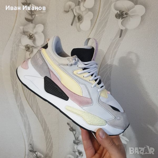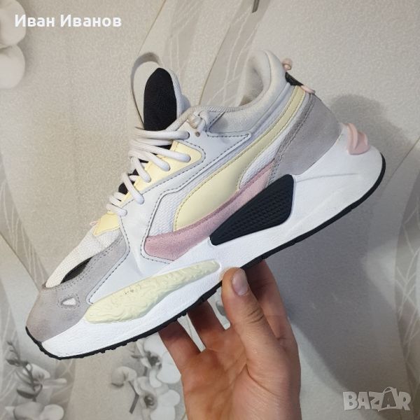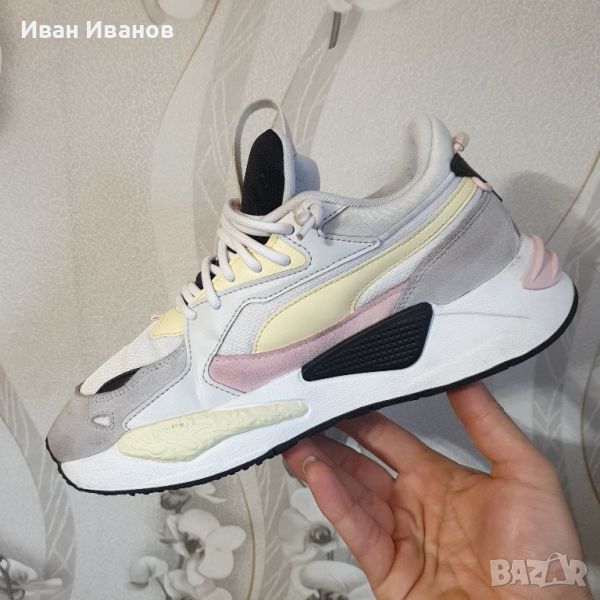 PUMA RS-Z REINVENT WNSИзползвани броени пъти , като нови , без следи и забележки .Перфектни RS-Z - най-новият член на RS семейството - напълно преоткрива концепцията за улично облекло. Верни на правилата на колекцията, тези зашеметяващи обувки превръщат спорта във форма на изкуство със своя остър силует и смел дизайн. Със стилен дизайн с мрежеста горна част и смели вложки от велур и синтетична кожа, тези обувки променят лицето на модата.Класическата система за бягане е издигната до невиждани висоти с Puma RS-Z Reinvent. Моделът впечатлява с футуристичните си форми, иновативен дизайн и цветни детайли.Puma RS-Z Reinvent се отличава с:- покритие от текстил и подсилващи елементи от естествена кожа (велур) и еко кожа;- сменяема стелка, която има ергономична форма и обгръща стъпалото;- междинна подметка от PU материал, който омекотява стъпката;- специална Running система, вградена в задната част на подметката, която създава мека опора на крака и подскачащо усещане по време на движение;