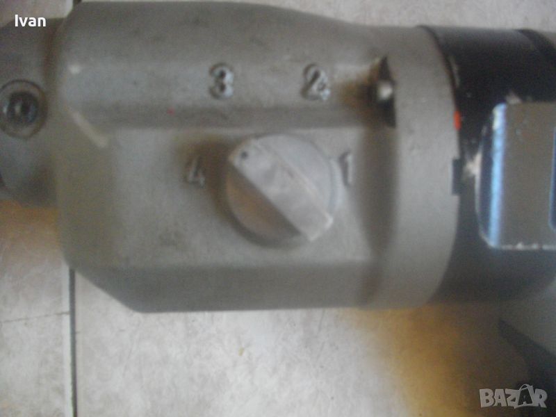 ОПИСАНИЕ на ел. диамантено пробивна машина - цена 999 лв. Почти нова, визулно много малко ползвана, като нова. В добро работно техническо състояние. Мощност 1800 вата, 4 скорости с обороти при различната скорост - ск1 - 498 об/мин, ск.2 - 900 об/мин, ск. 3 - 1400 об/мин. ск.4 - 2290 об/мин. Марка и модел на машината - Dr. Bender EB M 43 F. Характеристики - захранване - 230 V - 50-60 Hz - Защита 9 А /ампери/ - Мощност на мотора - 1800 W /Вата/. Пробив Ф макс при различната скорост - 150 - 90 - 60 - 30. Alihengstelt bei Calw. Вграден течен нивелир голям на дръжката, втори вграден малък кръгъл нивелир отзад на капака на корпуса. Автостоп на спусъка. Алуминиева задна част на корпуса, стоманена предна част, алуминиева капачка отзад. Клъч превключвател 4 скорости - метален. Отпред глава от закалена инструмента стомана с отвор ф 30 мм. Оригинален захранващ кабел с оригинален гумиран щепсел. На кабела тест защита с два бутона - Reset - Test и отделна светлинна индикация за претоварване на машината. Марка на тест защитата - ASS. Надписите на стикера с инструкции за употреба на машината са на немски език. Държина на машината - 46 см/дължина надолу с дръжката - 24 см, диаметър на машината ф 90 мм - ф 100 мм. Тегло на машината - 8,0 кг. Цена - 999 лв.