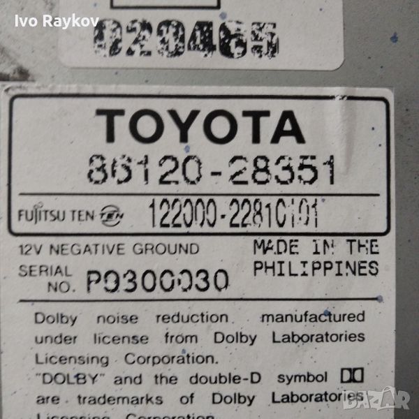Радио CD Toyota Previa II (_R3_) 86120-28351, снимка 1 - Части - 45423182 Радио CD Toyota Previa II (_R3_) 86120-28351, снимка 2 - Части - 45423182 Радио CD Toyota Previa II (_R3_) 86120-28351, снимка 3 - Части - 45423182 Радио CD Toyota Previa II (_R3_) 86120-28351, снимка 4 - Части - 45423182 Радио CD Toyota Previa II (_R3_) 86120-28351, снимка 5 - Части - 45423182 Радио CD Toyota Previa II (_R3_) 86120-28351, снимка 6 - Части - 45423182 1/6