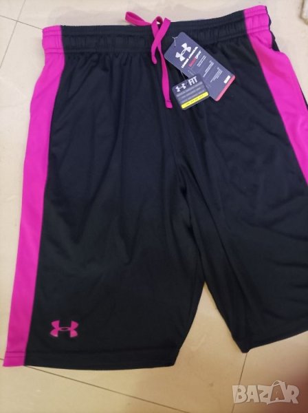 Оригинални къси панталони на Under armour . В най актуалните цветове в момента . Черно , червено-розово . Тънки , меки и супер еластични . Ширина при отпуснато състояние 38 см . и се разтягат до 58 см . Дължина 52 см . Тоест поради голямата еластичност стават от L размер до XXL размер . Закупени са в САЩ . Лимитирана серия модел . Цена без коментар ! Разгледайте и другите ни предложения .