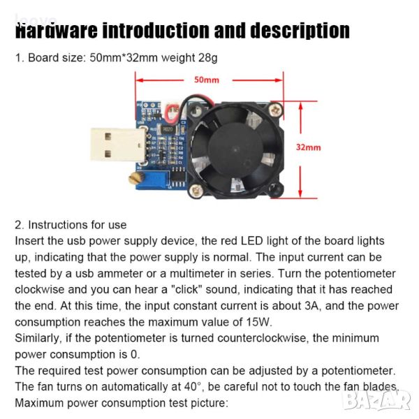 - непрекъсната мощност на разтоварване: 15W