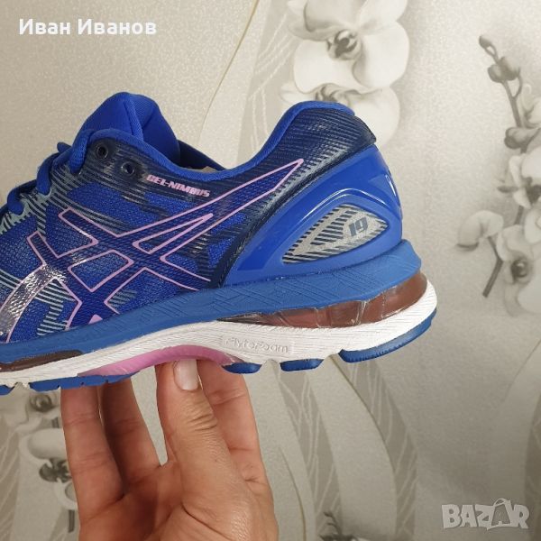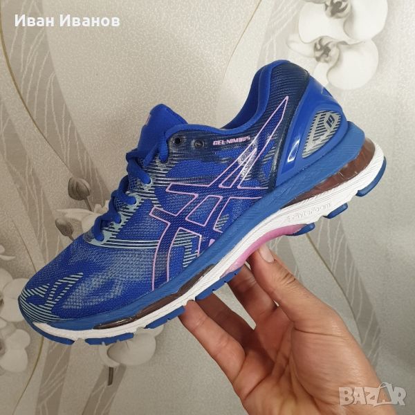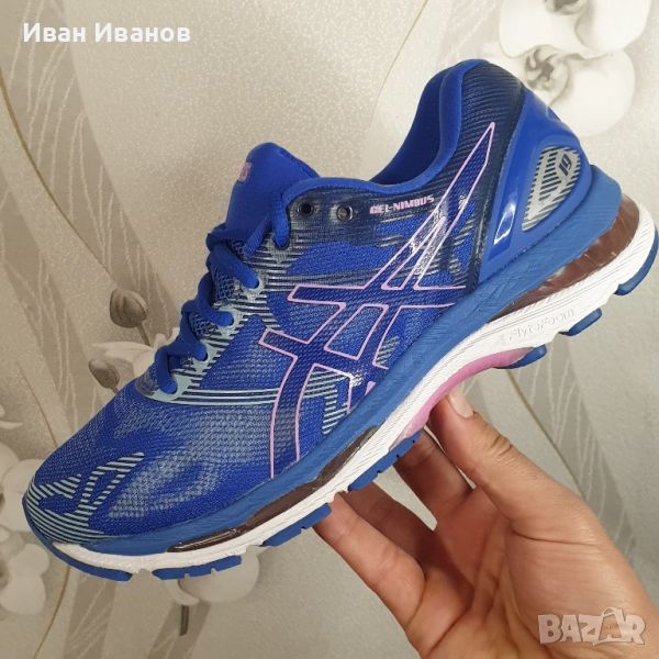Използвани два пъти , като нови без следии забележки. .Цена по магазините над 300 леваGel Nimbus 19 е популярна обувка за неутрални бегачи. Той разполага с революционна технология flytefoam, която осигурява платформа за бягане, която перфектно съчетава лекото омекотяване с оптимален баланс.Горната част е с градиентна жакардова мрежа, която е стратегически стегната и хлабава в ключовите зони, за да оптимизира естественото движение на крака.3D отпечатаните наслагвания в горната част допълнително добавят безпроблемна опора към крака ви за стабилно поддържащо бягане. Поемайте всеки километър с лекия комфорт на мъжките маратонки GEL-Nimbus 19 T750N от Asics. Сега с подобрено прилягане и допълнителна лекота, маратонките предлагат множество нива на омекотяване благодарение на комбинацията от междинна подметка FluidRide 2.0, междинна подметка от FlyteFoam и междинна подметка от горен слой SpEVA. Заедно това омекотяване увеличава характеристиките на отскок, като същевременно намалява разрушаването на междинната подметка. Отличаващ се с революционната технология FlyteFoam™ на Asics, този стил е създаден за оптимален комфорт и отзивчиво каране. Градиентна горна конструкция от жакардова мрежа е стегната и разхлабена в определени зони, за да позволи естественото движение на крака и следователно да работи с вас, докато тренирате.Характеристика:Дишаща горна част от инженерна мрежаGEL към предната и задната част на стъпалото осигурява омекотяванеМеждинна подметка Fluidride 2.0Технологията FlyteFoam предлага отскок назад и превъзходно омекотяване с ниско теглоSpEVA пянаИздуханата гума на външната подметка AHAR+ осигурява подобрено омекотяване и издръжливостВъншен брояч на петатаДоверителна системаТегло: 255 грCOMFORDRY X-40 SOCKLINERCOMFORDRY LASTINGDISCRETE HEELETSFLUIDRIDE® MIDSOLEFLUIDFIT® UPERFLYTEFLOAM MIDSOLE TECHNOLOGY GUIDANCE LINE® TECHNOLOGY GUIDANCESYSTEM® TECHNOLOGY HEEL CLUTCHING SYSTEM STEM ТЕХНОЛОГИЯ I.GS® ТЕХНОЛОГИЯ (БЯГАНЕ) REARFOOT И FOREFOOT GEL® CUSHIONING СИСТЕМИ БЕЗШЕВНА КОНСТРУКЦИЯ