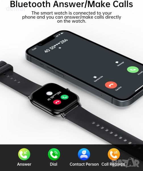 Този мъжки смарт часовник разполага с 1,85-инчов HD сензорен екран с над 240 персонализируеми циферблата, улесняващи безпроблемна навигация чрез контроли с докосване и плъзгане. Включва Bluetooth разговори с висококачествени високоговорители за обработка на повиквания и известия от основни приложения като WhatsApp, Facebook и Instagram. Допълнителните функции включват управление на музиката, прогнози за времето, напомняния за заседнал начин на живот, дистанционна камера, аларма и хронометър. Умният часовник поддържа 111+ спортни режима, сърдечен ритъм в реално време и мониторинг на кислорода в кръвта и проследява моделите на съня, за да подобри фитнес прозренията. Съвместим с iOS 10.0 и Android 9.0 или по-нова версия, той може да се похвали с бързо зареждаща се 270mAh батерия, която издържа до 7 дни или 30 дни в режим на готовност. Свържете се чрез приложението "FitCloudPro" за цялостно изживяване със смарт устройство.