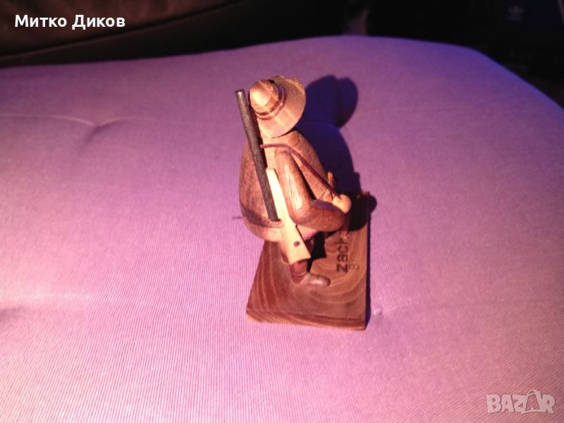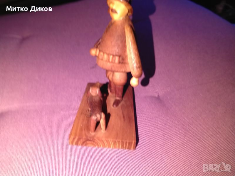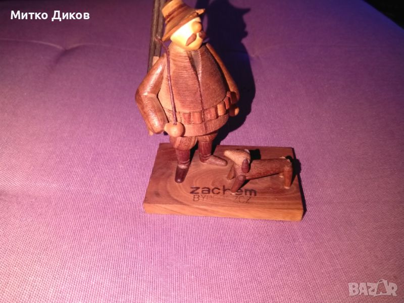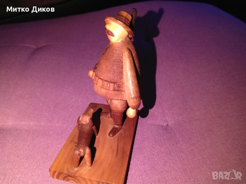 Ловец с куче дървена скулптурка винтидж Полша Н-90мм и 70х40мм → Обява 45424912