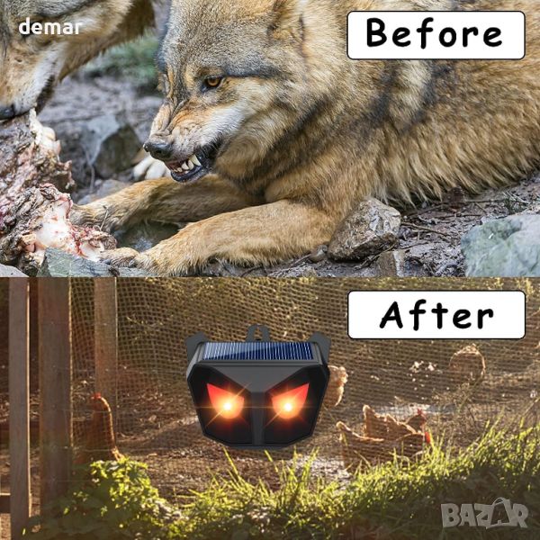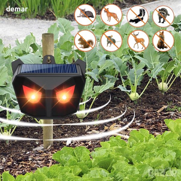 Соларен нощен репелент за животни, червени LED светлини, водоустойчив, възпиращ хищници