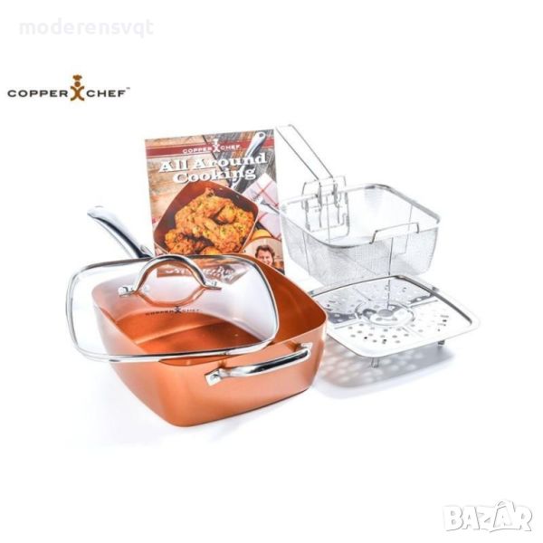 Copper Pan квадратен майсторски тиган за 5 начина на готвене