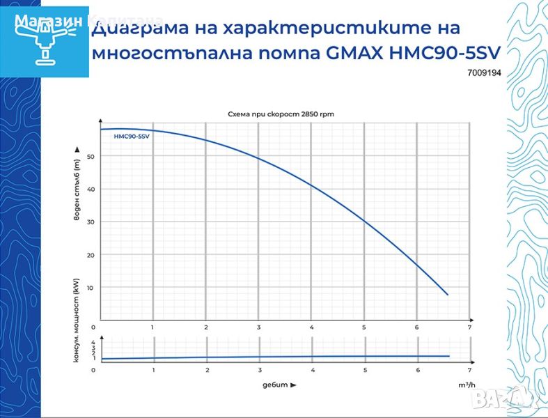Самозасмукваща многостъпална помпа вертикална воден стълб 58м., 5,4m3/h