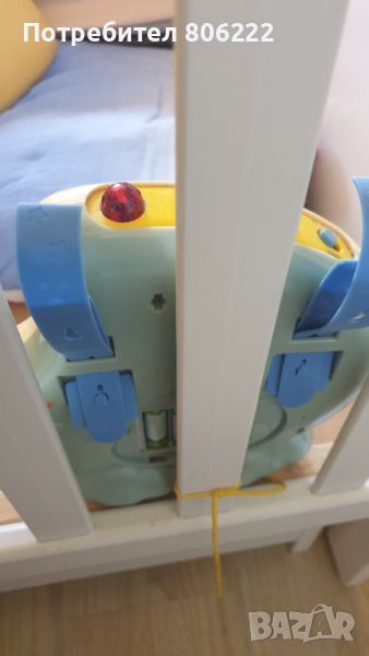 Няма дистанционното от клипа, и е скъсано захващането за кошарата, може да бъде вързана само както е на снимката или трябва да се приспособи захващане. Изключително успокояващи мелодии, които ги слушахме до големи, а и прожектора на тавана действа успосояващо на бебето.