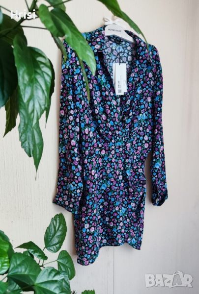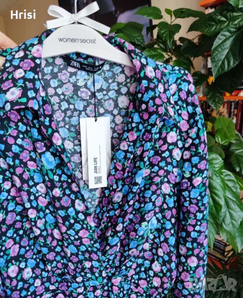 Нова къса рокля ZARA с етикет. Секси, но удобен модел в размер S. Според мен подходяща и за М. Принт в свежи цветове. С подплата от талията надолу е и лек страничен набор за акцент. Деколтето е дълбоко, но може да се носи и притворено. Моделът имитира тип "прегърни ме", но полата е съшита в талията и почти не се отваря.