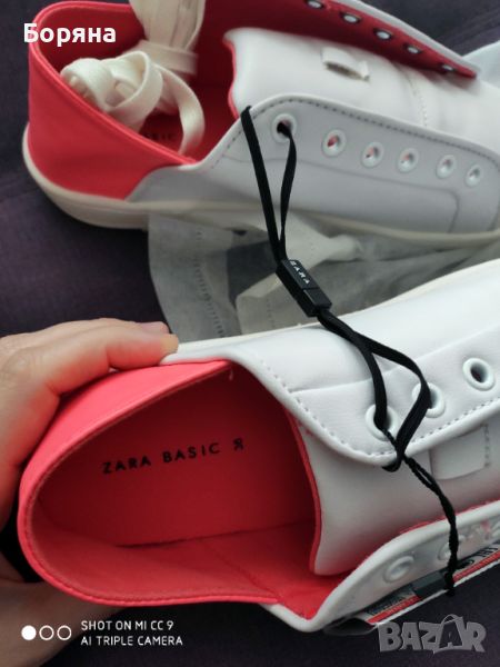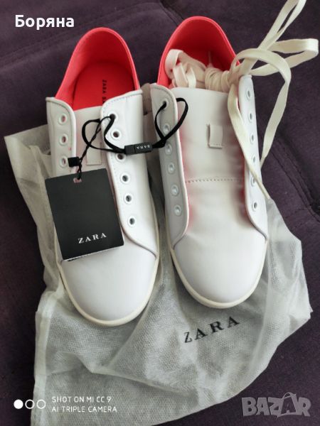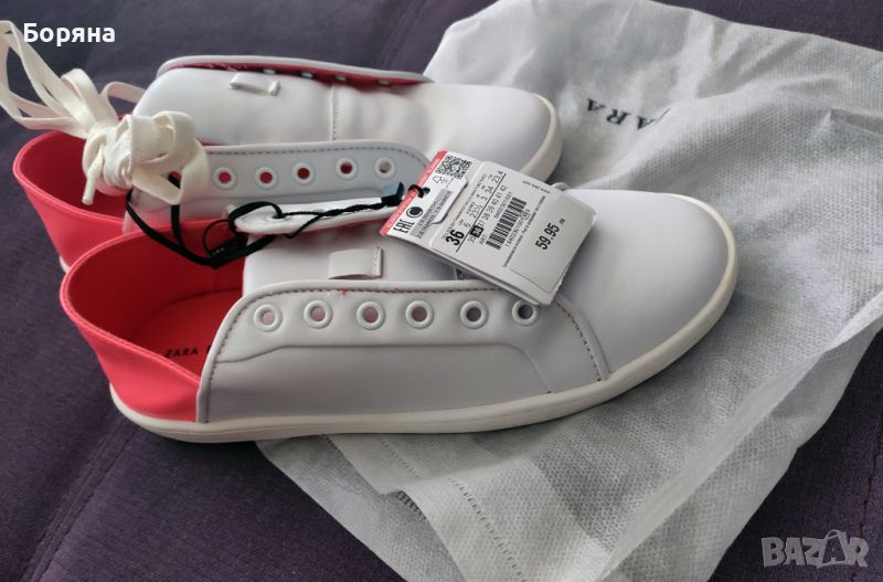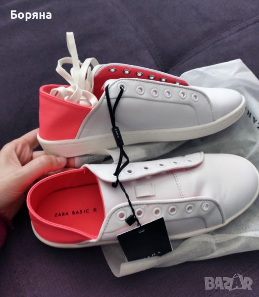 Нови с етикет кецове ZARA, много мека еко кожа, бяло в съчетание с корал, размер 36, цена 49 лв.
