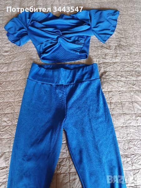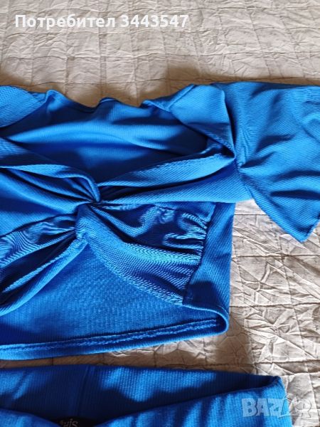 Сет от две части.Кралско син цвят.Ластични.Клинче с къса блузка.