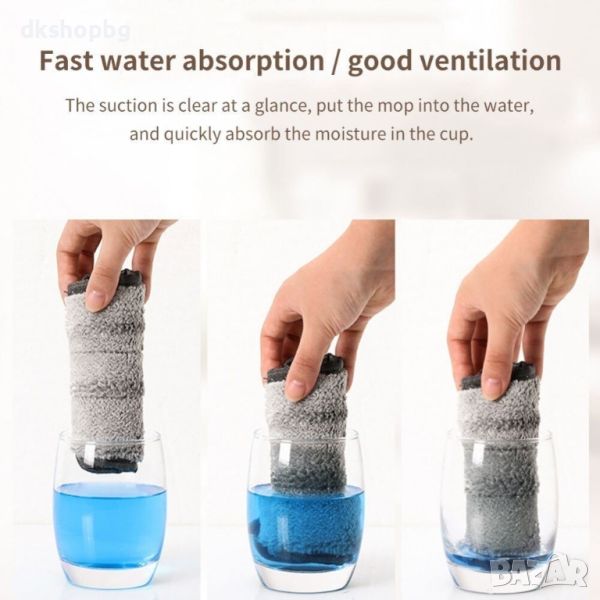 Мопът се състои от 3 елемента, може да се почисти, без да се отстранява кърпата.