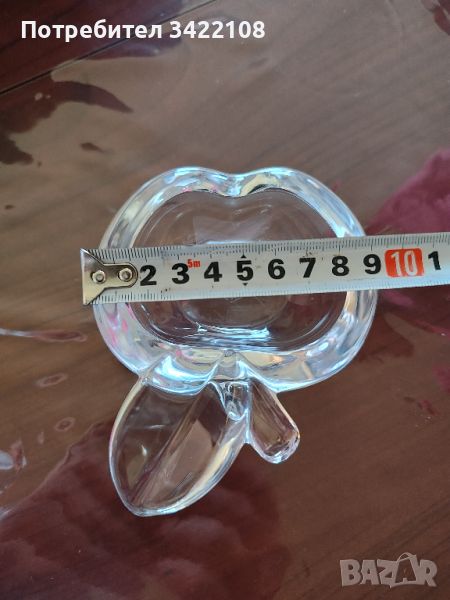 Винтидж френски кристален пепелник с форма на ябълка на Verrerie Cristallerie de Vannes-le-Châtel от 60-те/70-те