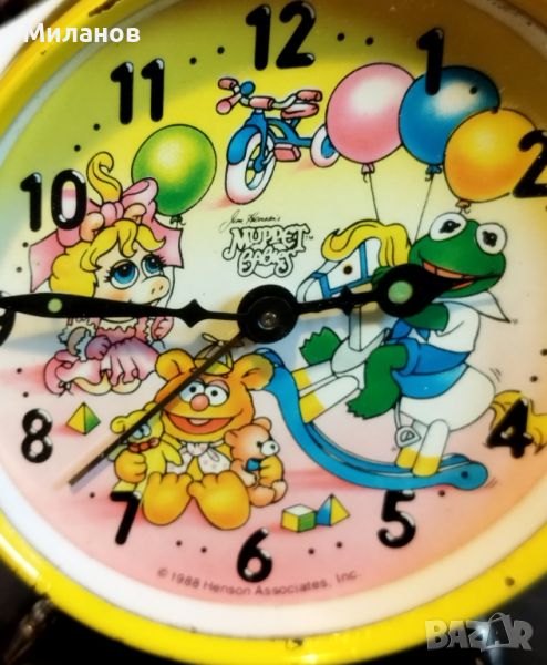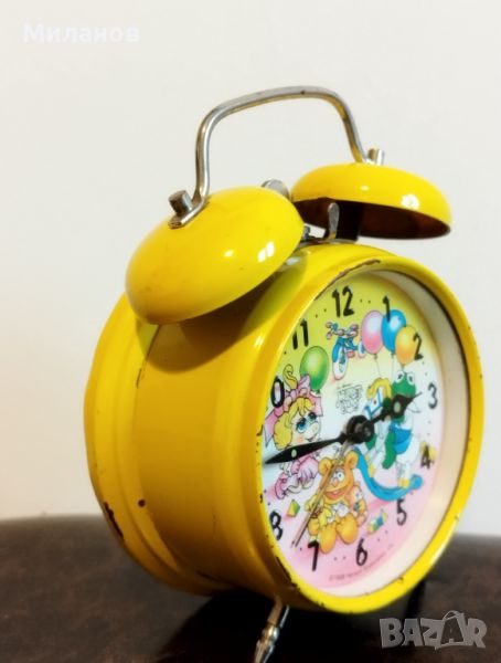 Стар механичен будилник, работи и звъни, от1988 година.Muppet babies, рядък.Диаметър отзад-110 милиметра