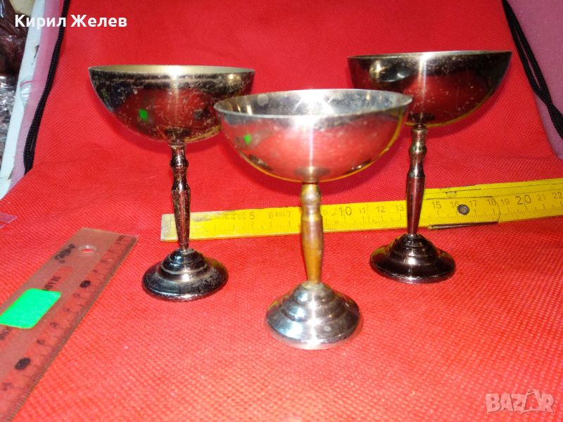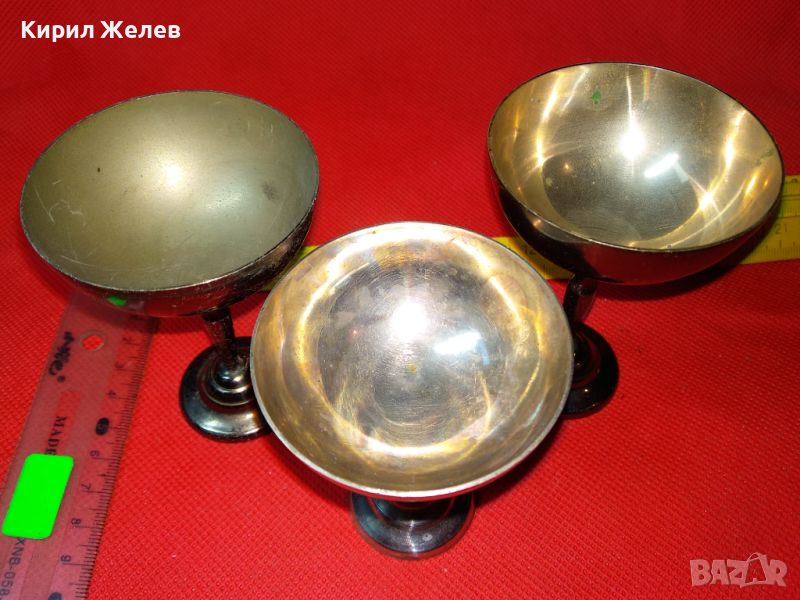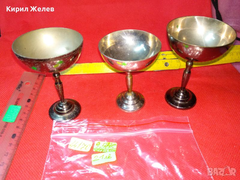ЛОТ ТРИ СТАРИ РЕТРО СТИЛ КОЛЕКЦИОНЕРСКИ ПОСРЕБРЕНИ БРОНЗОВИ ЧАШИ За ЛИКЬОР КОНЯК КОКТЕЙЛ 44170