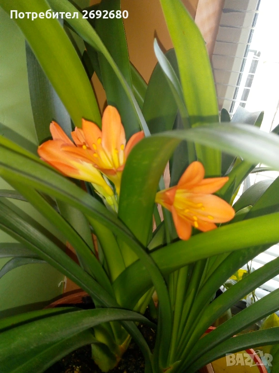 Голяма оранжева кливия с цветонос(5бр.в една саксия с обща цена) → Обява 45435468