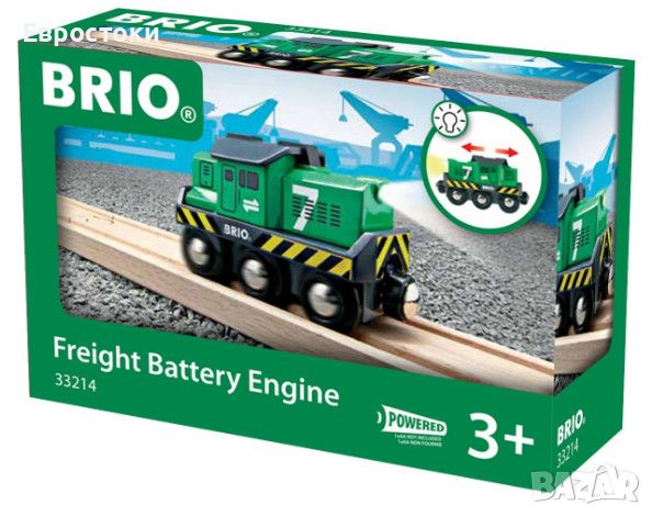Автоматичният зелен локомотив BRIO 33214 винаги ще достави товара навреме до всяка точка на дървената железница BRIO! Играчката работи с една AA батерия (не е включена). Използвайте превключвателя на покрива, за да накарате локомотива да се движи напред, назад или да спре. При движение напред фарът светва, за да осветява пътя.