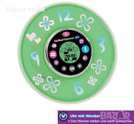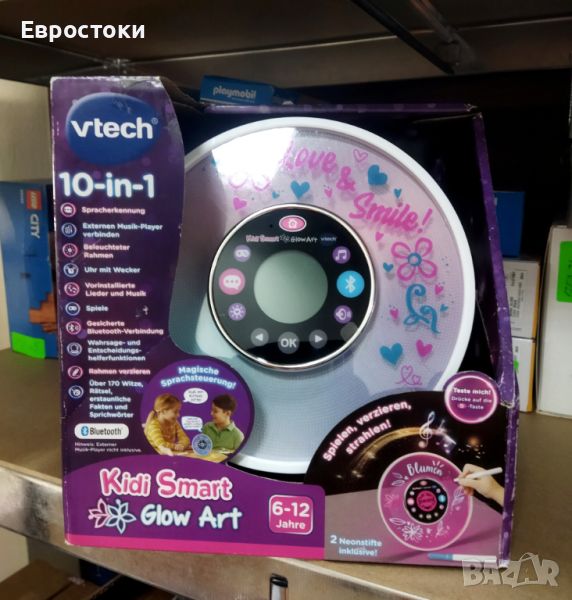 Детски Bluetooth музикален плейър Vtech KidiSmart Glow Art, детска Bluetooth тонколона с гласово управление, будилник, игри, вицове и пъзели, немска версия.