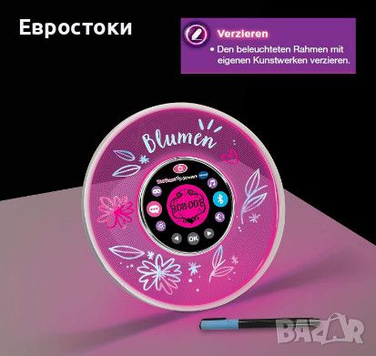 Страхотна детска Bluetooth тонколона 10 в 1 с гласово управление, фантастична светлинна рамка, музикален будилник, предварително инсталирана музика, игри, вицове и пъзели!