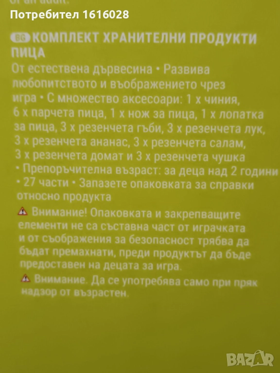 Нови дървени пици.Комплекта съдържа 27 части.Лопатка и нож за 6 парчета пица,към които с лепенки се закачат отгоре парчетата добавка резенчета домат,чушка,лук,гъби,ананас,салам.