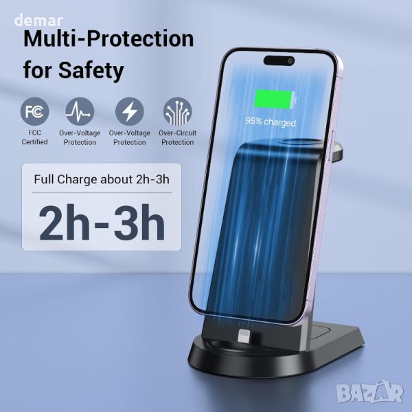 3 в 1 зарядна станция за apple устройства, стойка с безжично зарядно