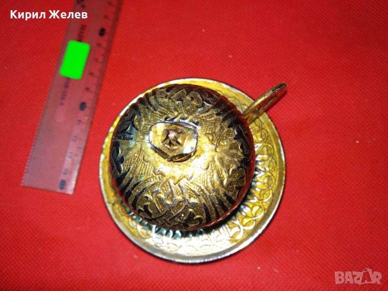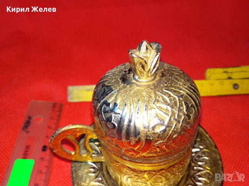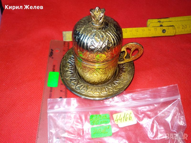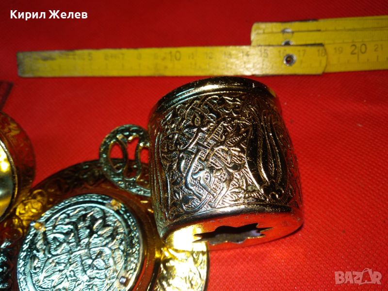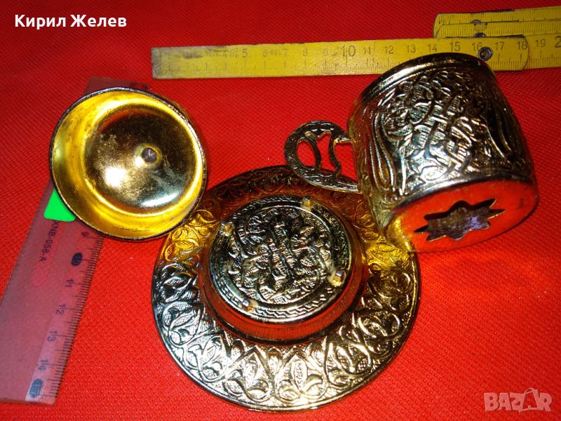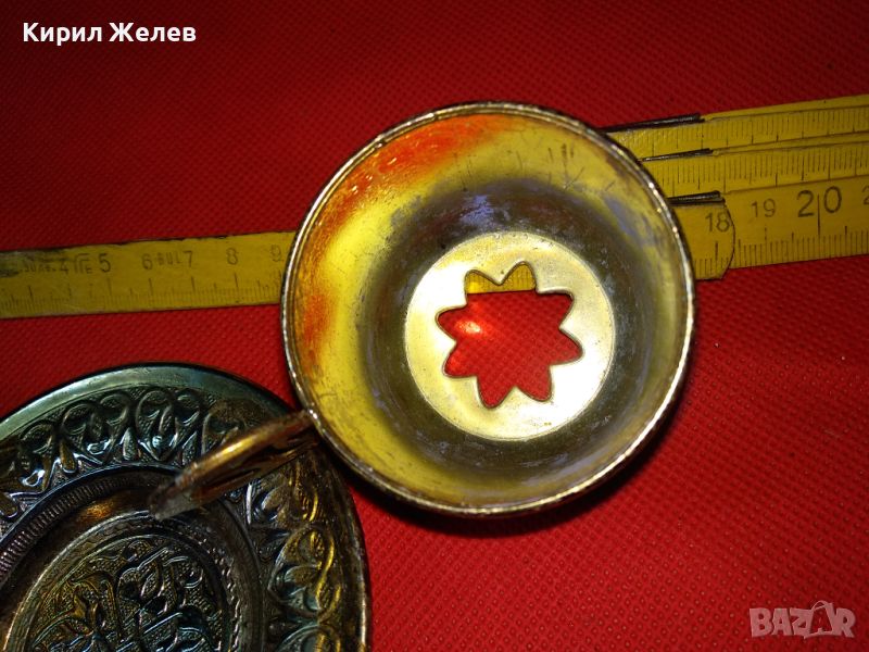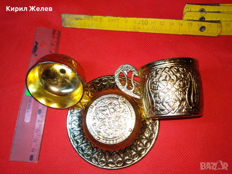 СТАР МЕТАЛЕН ЗЛАТИСТ ПОДСТАКАН с ЧИНИЙКА За ЧАШКА ЧАЙ с ФЛОРАЛНА КРАСИВА ОРНАМЕНТИКА 44166