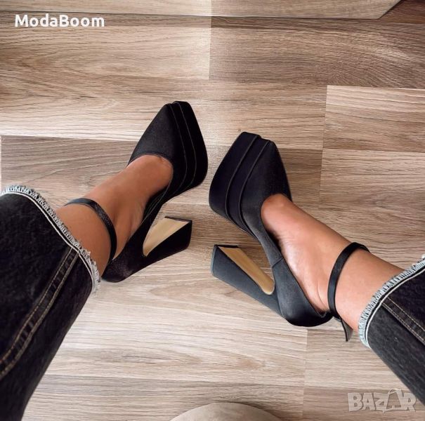 🖤⚡Черни сатенени дамски обувки на ток🖤⚡