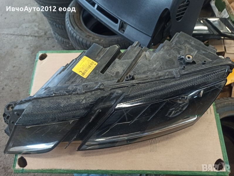 Оригинален ляв фар Automotive lighting 5 E1 941 015 F здрави захвати спукано стъкло в горният ъгъл отбелязано със стрелка.