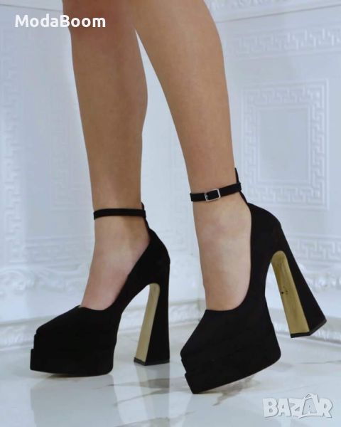 ✨🖤Черни велурени обувки на ток🖤✨