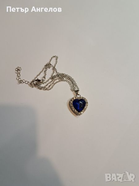 Дамско сребристо колие с висулка синьо сърце → Обява 45445896