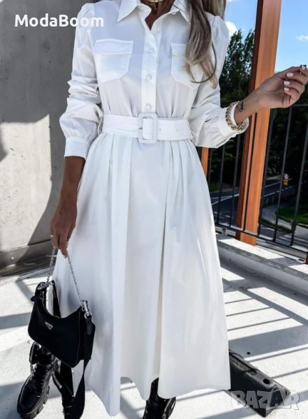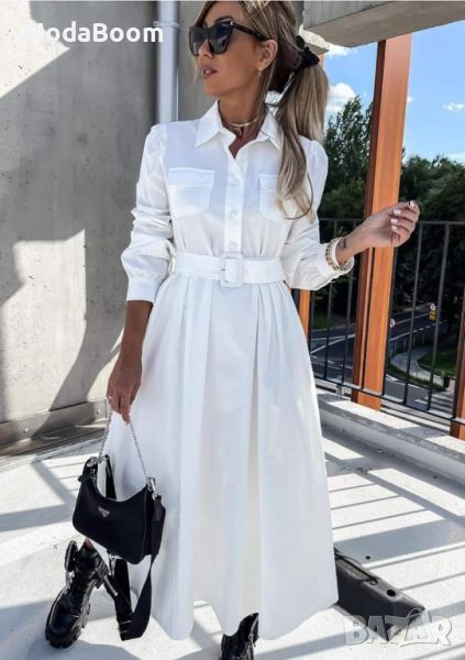 🤍Стилна бяла дамска рокля с колан🤍 → Обява 45445961