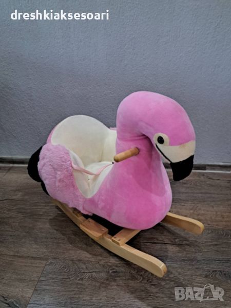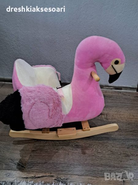 ЛЮЛКА РОЗОВО ФЛАМИНГО: Красиво и много меко плюшено розово фламинго е идеалната играчка, която помага на малките в сетивното им развитие през първите години от живота. МУСКУЛНО РАЗВИТИЕ: Търсите ли играчка, която да придружава вашето растящо мъниче? Този люлеещ се стол е идеалното решение, защото ще насърчи развитието на баланса, двигателната координация, мускулите на краката, ръцете и корема на вашето дете. Перфектен за първите години от живота, може да се използва при игра на открито или у дома. БЕЗОПАСНОСТТА ПЪРВО: Играчката е безопасна и лесна за използване: дървените дръжки и предпазните колани ще й помогнат и ще я предпазят по време на игра. Всички използвани материали са от най-високо качество и отговарят стриктно на стандартите, установени от Европейския съюз. Носещата конструкция на люлеещия се стол е изработена от дърво: здрави и устойчиви дъски, придават на играчката стабилност, без да я утежняват. ПРЕДНАЗНАЧЕНА ЗА ДЕЦА: Дизайнът на люлката е предназначен да предпазва най-малките по време на игра. Всички ъгли са заоблени, а дървените повърхности са добре шлайфани без релефни винтове, като по този начин предпазват дрехите и кожата на децата от надраскване. РАЗМЕРИ: Общи размери: 60 Д x 33 Ш x 52 В см, Височина на седалката: 27 см, Максимално натоварване: 25 кг, Подходящо за деца на възраст между 18 и 36 месеца. Малките винаги имат нужда от движение и отприщване на жизнеността си, особено по време на игра. Това люлеещо се фламинго е идеално за деца, пълни с енергия и с голямо желание да се забавляват: те могат да се люлеят с любимото си животно в пълна безопасност, както у дома, така и на открито. Играчката е отлична, защото е занимание, което може да стимулира мускулната подвижност и независимост на децата. Сладкият вид на фламингото със сигурност ще привлече всички деца; Аспен дървото е солиден и лек материал, проектиран да издържи във времето, идеален за люлеещо се конче; Люлеещата се играчка може да помогне за развитието на коремните мускули, баланса и координацията през първите години от живота; · Продукт, предназначен за деца, с гладка повърхност, предпазни колани и дървена рамка; Люлеещото се конче е подходящо за деца на възраст между 18 и 36 месеца, като максималното му натоварване е 25 кг; · Всички материали стриктно отговарят на стандартите за безопасност за играчки, определени от Европейския съюз. Характер: Розово фламинго; Габаритни размери: 60 Д x 33 Ш x 52 В см; · Материали: Плюш, Памук Полипропилен (Отвътре), Естествено трепетликово дърво; · Цвят: Розов, Бял, Черен; Височина на седалката: 27 см; Максимално натоварване: 25 кг; · Предназначено за деца на възраст между 18 и 36 месеца; · Европейски сертификат за играчки EN71-1,2,3; Тегло нето: 3 кг. 1 х конче люлка; 1 х ръководство;