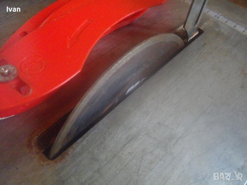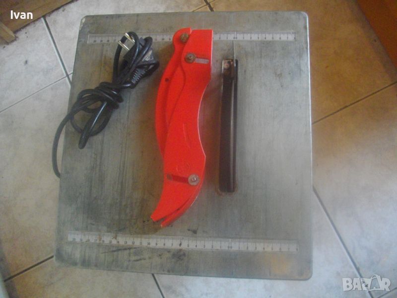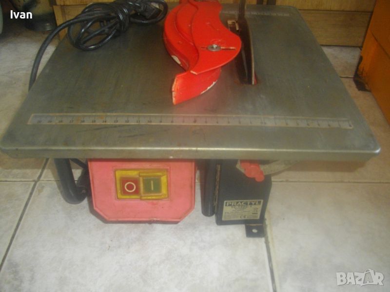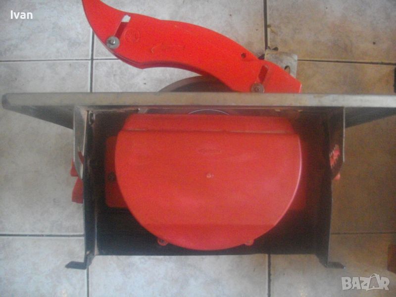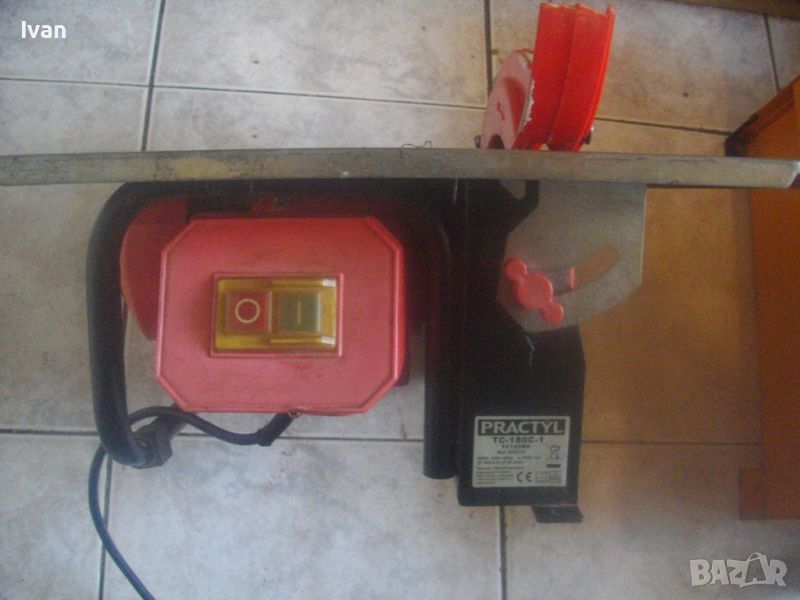 ОПИСАНИЕ на малка ел.машина за рязане на плочи/плочки с червен капак над диска - PRACTYL - цена 229 лв. Почти нова, силна и мощна 600 ватова електрическа машина за сухо рязане на всякакви плочки8плочи, без мрамор - фаянс, теракот, гранитогрес, гнайс, керамика. Марка и модел на машината - PRACTYL TC-180C-1. Производство - P.R.C. Отлично техн. състояние, много запазен външен вид - почти нова ,ползвана веднъж - два пъти. Поставен оригинален диск диамантина - ф 180 мм, почти нов. Мощност на мотора - 600 вата ,обороти - 2 950 /мин. Наклон на плота - 45-90 градуса. Рязане на плочи с дебелина до 32 мм при 90 градуса.Предни пускови 2 бутона с антипрахова ,силиконово покрите. Основа метална стоманена. Плот - стоманен. Размери - 230 мм ширина, дължина 265 мм. Разграфен до 21 см. Наличен оригиналният предпазен капак над диска.