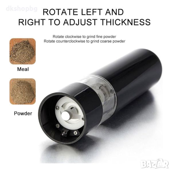 Електрическа мелница с LED осветление и регулируема финност на смилане на батерии представлява перфектният аксесоар за всички ценители на свежо смлян кафе и подправки. Снабдена със завъртащ механизъм, тази мелница работи с батерии, което я прави лесна за употреба.