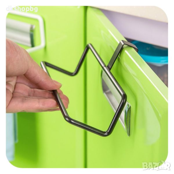 Закачалката е подходяща за окачване на хавлии върху шкафове. Монтажът е ефективен лесен и бърз. Без пробиване и сглобяване.