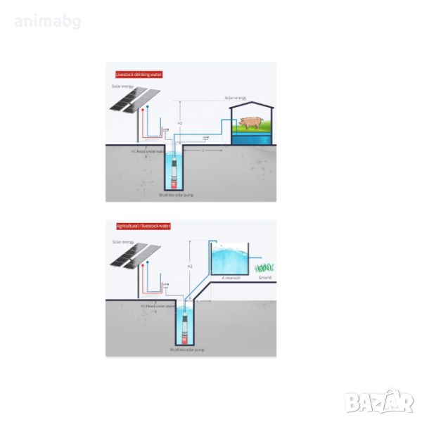 Забележка: Продуктът съдържа само соларни помпи за постоянен ток, а не слънчеви панели и батерии