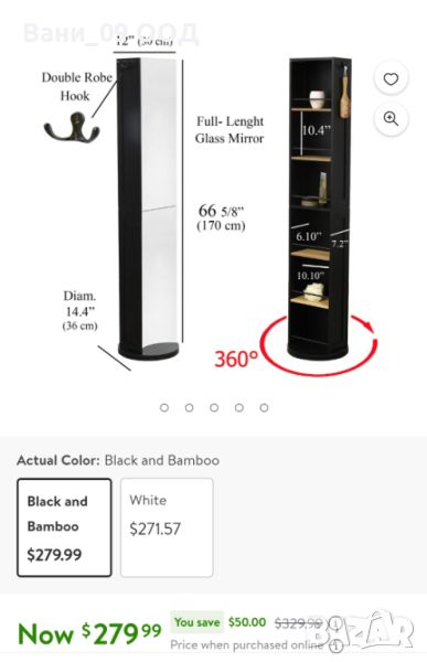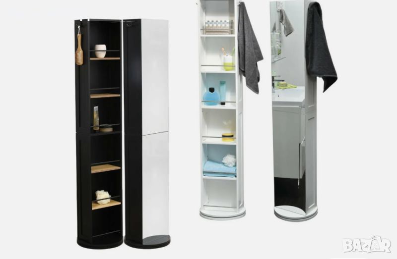 Въртяща се на 360° колона за баня в бял или черен цвят, с огледало.