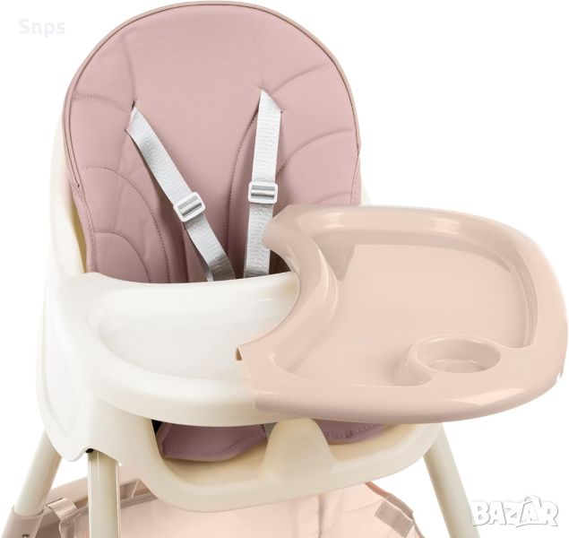 Бебешко столче за хранене, регулируема сгъваема маса, 5-точкова каишка, розово